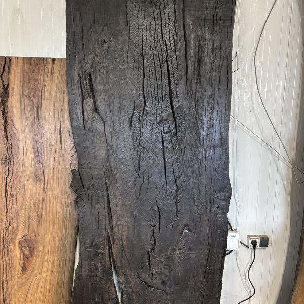 Blat z czarnego dębu to prawdziwy rarytas wśród elementów wyposażenia wnętrz — unikalne połączenie natury, historii i luksusu. Wykonany z autentycznego czarnego dębu, który przez tysiące lat dojrzewał w głębiach ziemi lub pod wodą, zachwyca niezwykle głębokim, naturalnie ciemnym odcieniem oraz wyrazistym rysunkiem słojów. Każdy fragment tego szlachetnego drewna opowiada historię sięgającą setek, a nawet tysięcy lat wstecz.