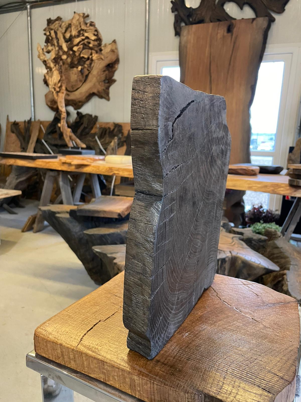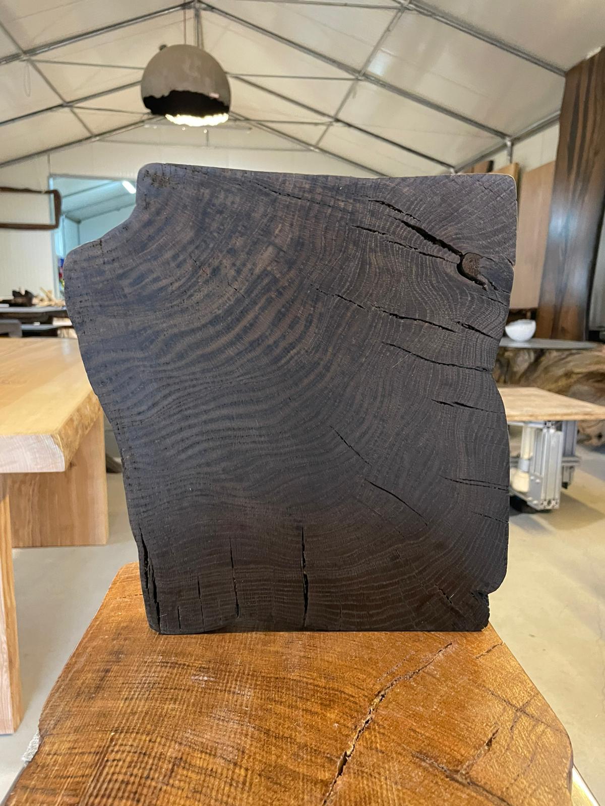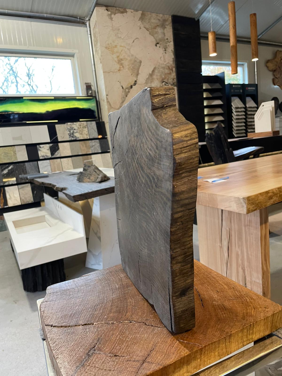 Ta deska z czarnego dębu to naturalny fragment o niepowtarzalnej strukturze i głębokim odcieniu. Widoczne słoje i naturalne pęknięcia nadają jej autentycznego charakteru, dzięki czemu świetnie sprawdzi się jako element dekoracyjny, blat, półka lub materiał do renowacji mebli. Każdy kawałek drewna jest unikatowy – różni się kolorem, układem słojów i fakturą, co podkreśla jego naturalne pochodzenie. Deska idealna do wnętrz w stylu rustykalnym, industrialnym, boho i vintage.