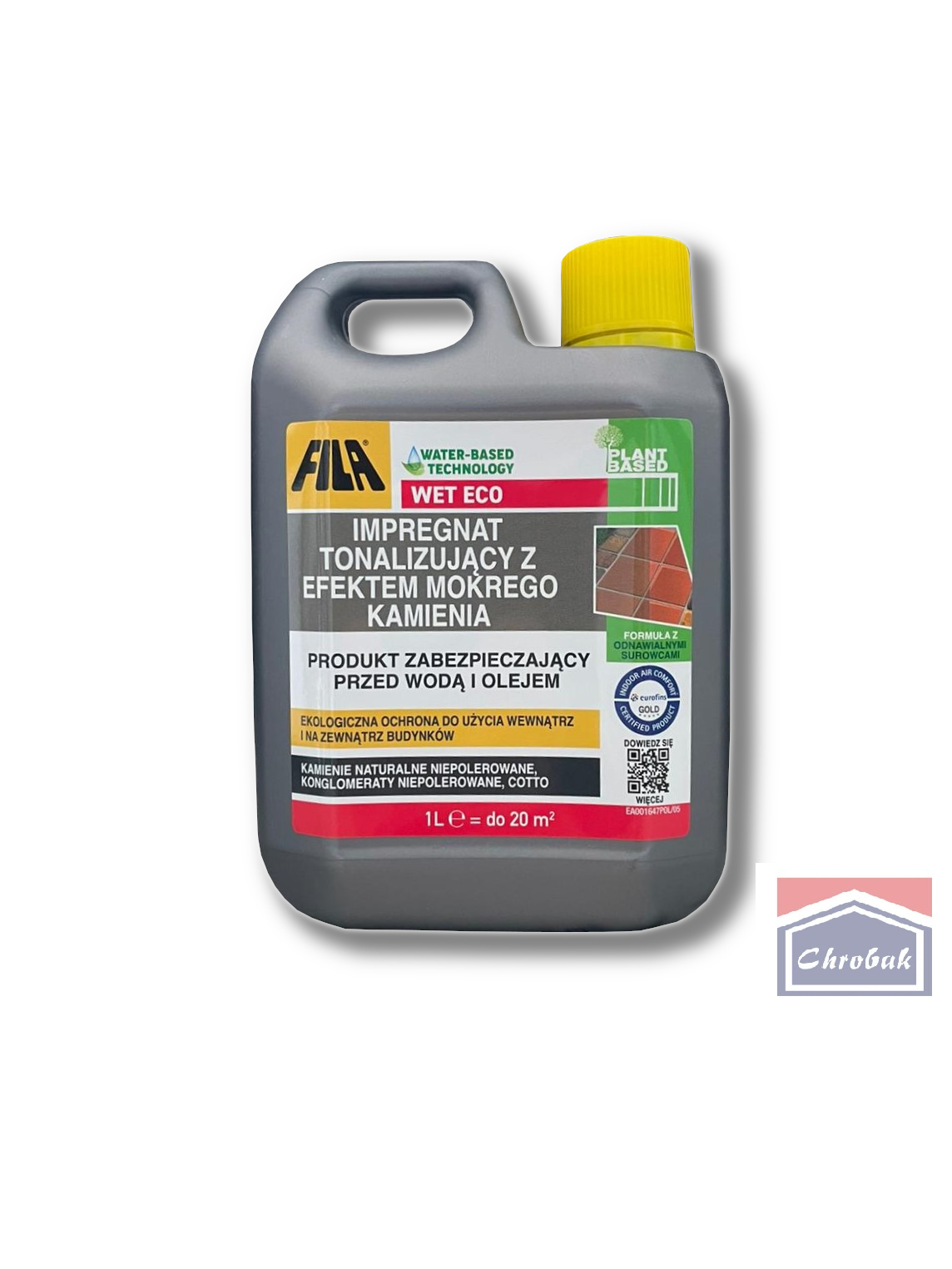 FILA Wet Eco to impregnat, który nadaje kolor, chroni przed brudem i plamami powierzchni wykonanych z kamienia naturalnego. Jest polecany do zastosowania zarówno na zewnątrz, jak i wewnątrz pomieszczeń. Poprawia intensywność koloru materiału, dając efekt „mokrego podłoża”. Nie żółknie i nie łuszczy się z biegiem czasu. FILA Wet Eco jest odporny na duże obciążenie pieszych: może być stosowany w obszarach o dużym ruchu pojazdów.
