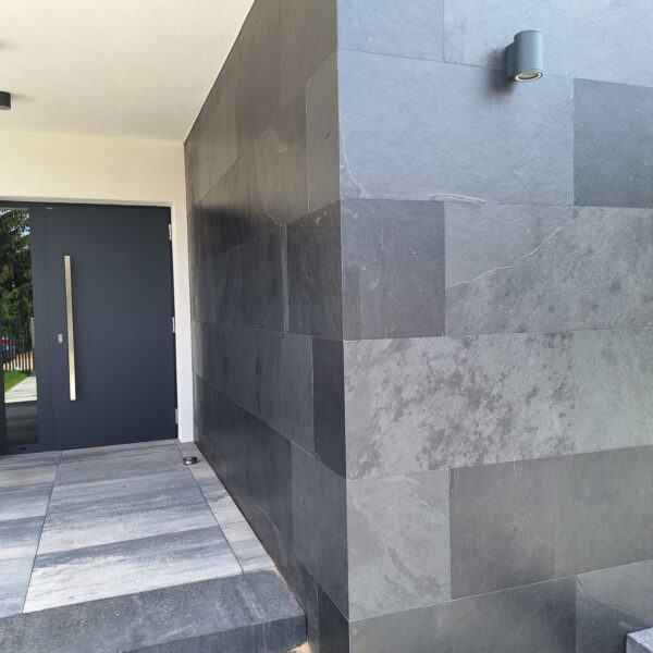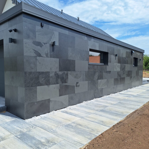 Płytka kamienna z łupka brazylijskiego Black XXL w rozmiarze 90x40x1 cm to elegancki wybór dla miłośników naturalnych materiałów wykończeniowych. Charakteryzuje się wyjątkowym wyglądem ciemnego, głębokiego koloru, który dodaje wnętrzom i przestrzeniom zewnętrznym luksusowego charakteru.