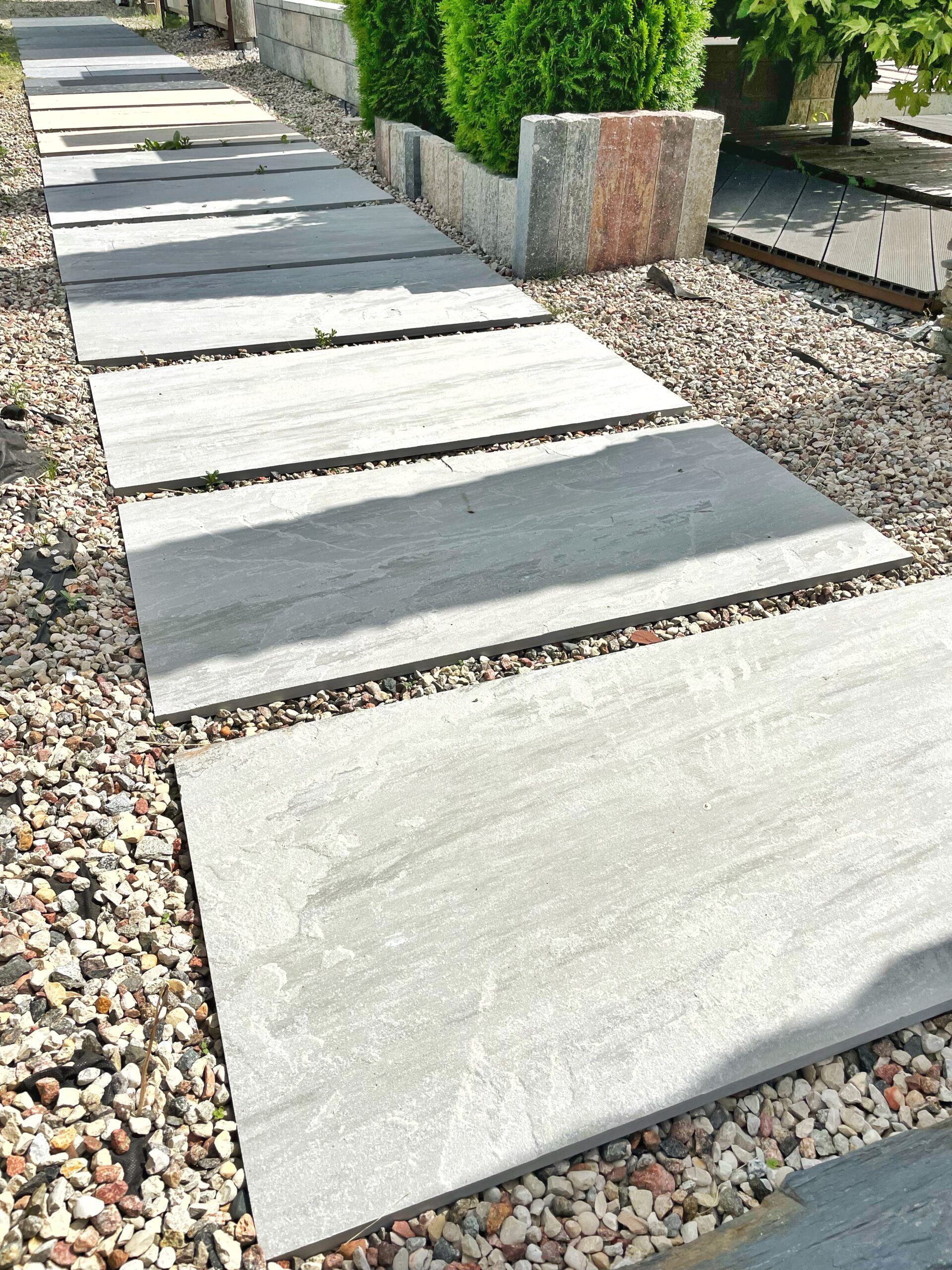 Materiał ten sprawdza się idealnie na schodach i tarasach. Pięknie prezentują się również elewacje.