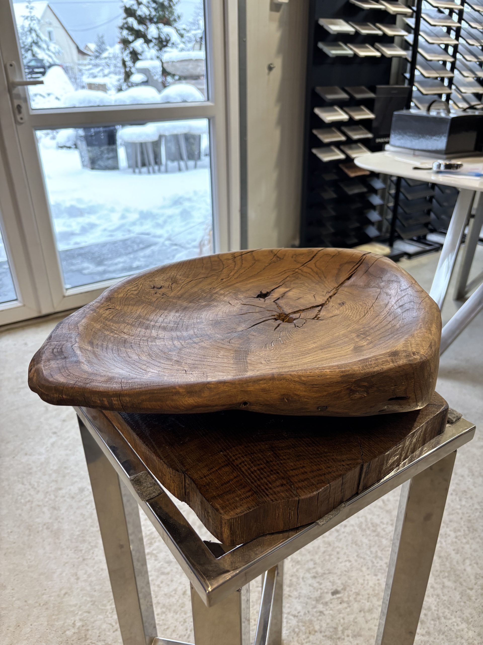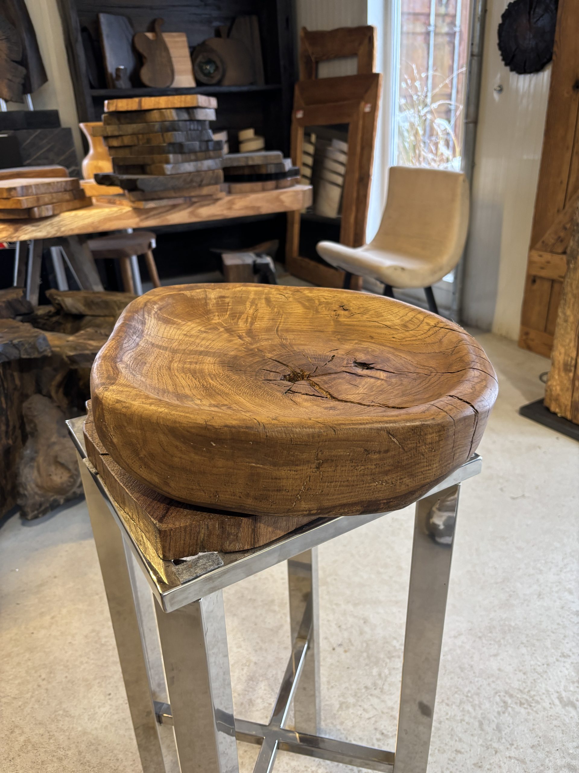 Ta misa z dębu bagiennego z litego drewna to wyjątkowy element dekoracyjny łączący w sobie naturalność, elegancję i kunszt rzemiosła. Wykonana z jednego kawałka starannie wyselekcjonowanego dębu bagiennego, zachwyca pięknym, organicznym kształtem oraz wyraźnie widocznym, głębokim rysunkiem słojów. Każda misa jest unikatowa – niepowtarzalny układ włókien, naturalne pęknięcia i ręczne wykończenie sprawiają, że stanowi prawdziwe dzieło sztuki użytkowej.