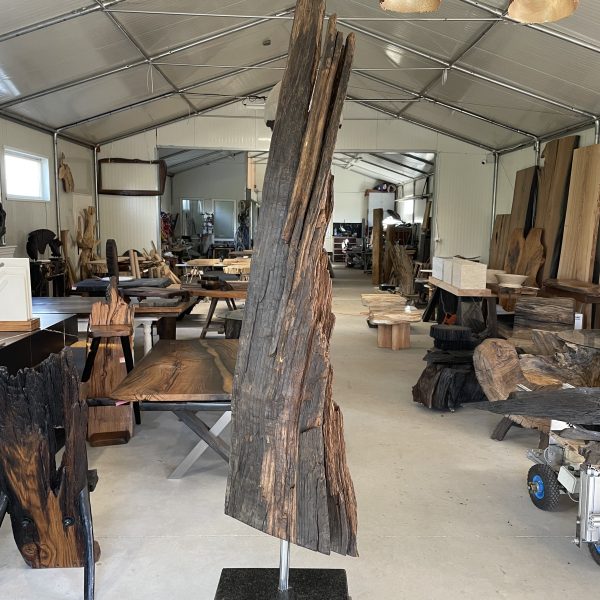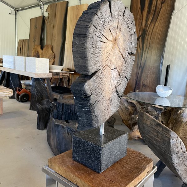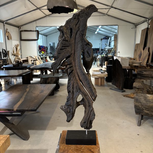 Czarny dąb to drewno, które przez setki, a nawet tysiące lat dojrzewało w naturalnych warunkach – zanurzone w rzekach i torfowiskach. W wyniku długotrwałych procesów mineralizacji zyskało głęboki, ciemny kolor, wysoką gęstość oraz wyjątkową twardość i trwałość. Każdy fragment tego drewna ma niepowtarzalny rysunek słojów i indywidualną strukturę, co sprawia, że każda rzeźba jest absolutnie unikatowa.