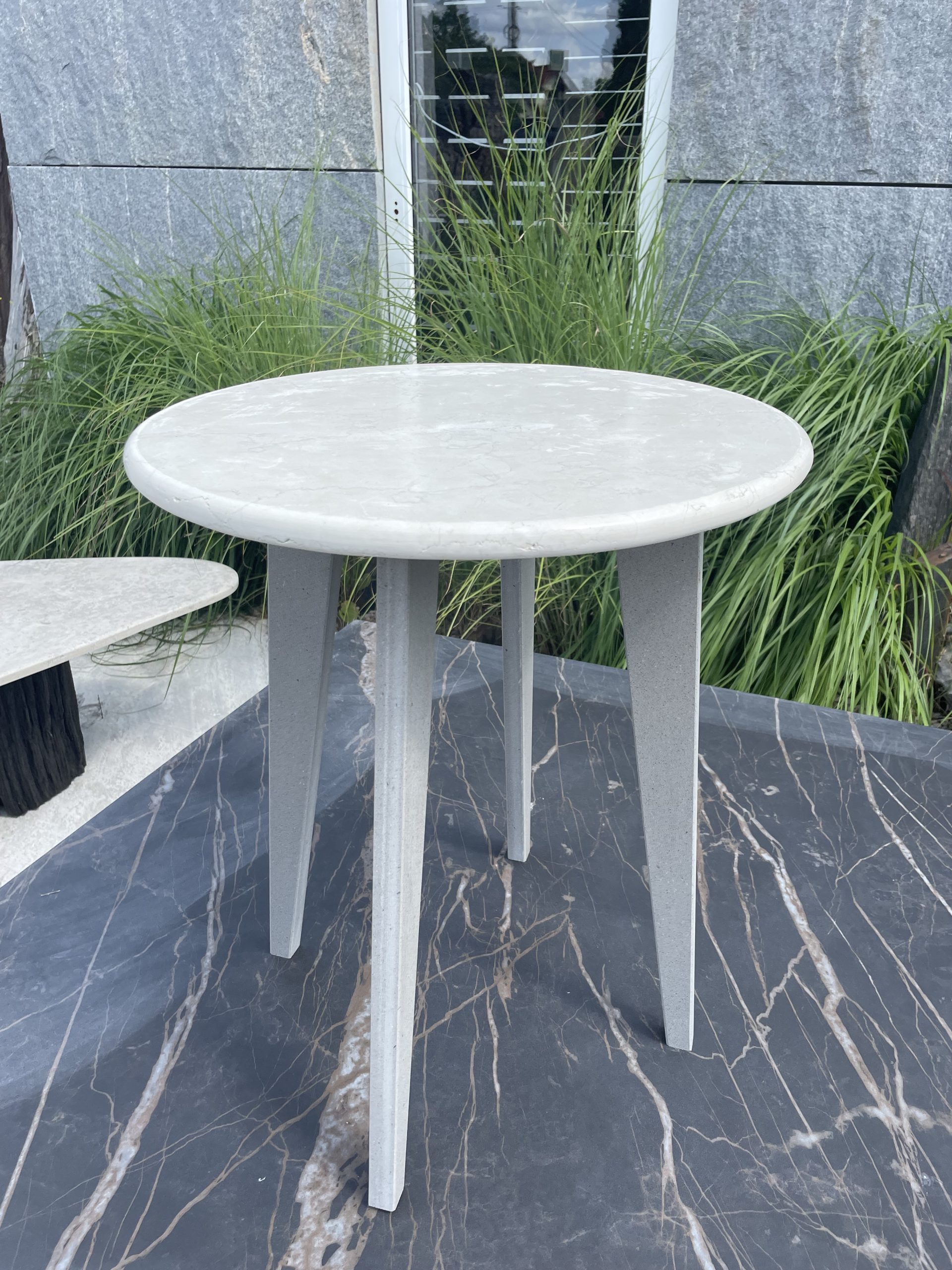 Podstawę stanowi solidny konglomerat kwarcowy (kwarco-granit), który zapewnia wysoką stabilność, trwałość oraz odporność na codzienne użytkowanie. Minimalistyczna forma podstawy doskonale równoważy elegancję marmuru, tworząc spójną i estetyczną całość.