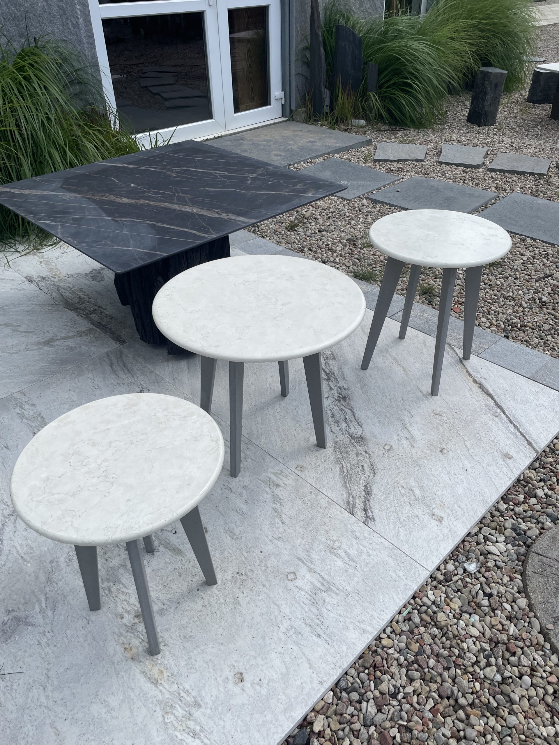 Stoliki mogą być użytkowane pojedynczo lub zestawiane jako komplet, tworząc efektowną i funkcjonalną kompozycję we wnętrzu.