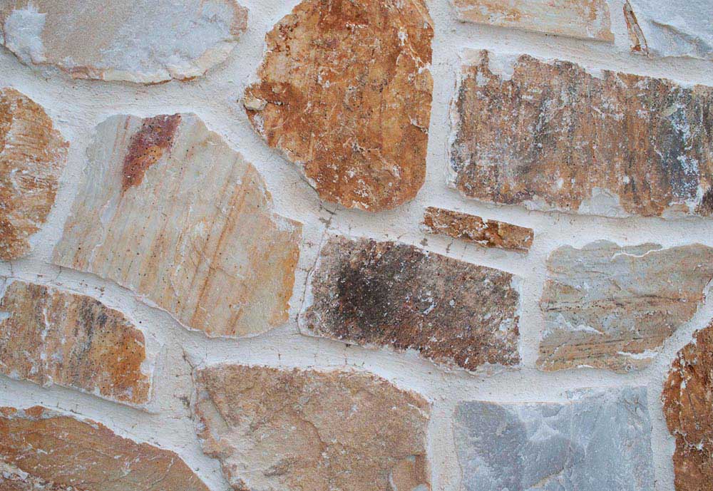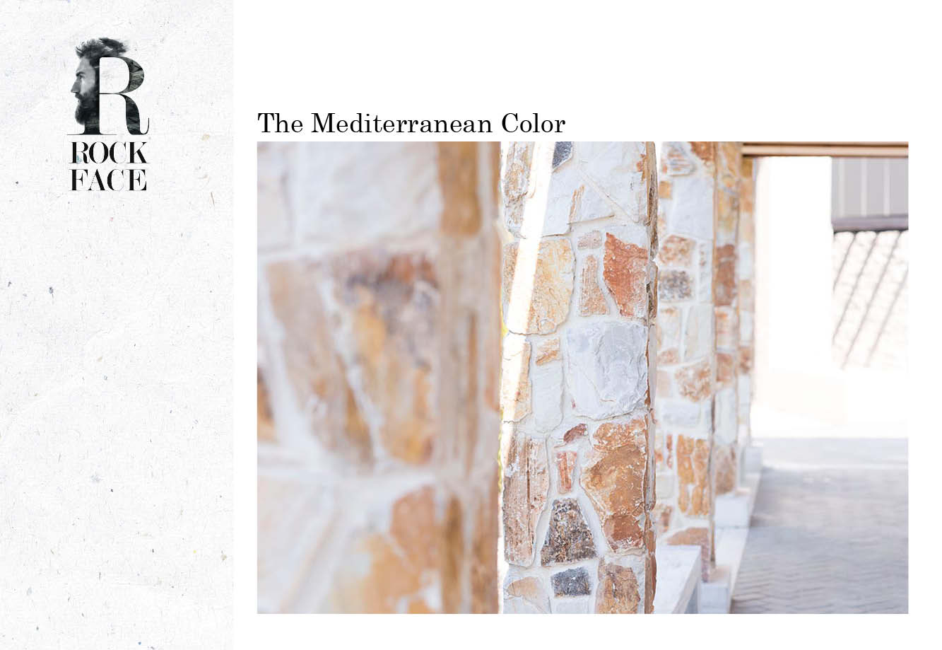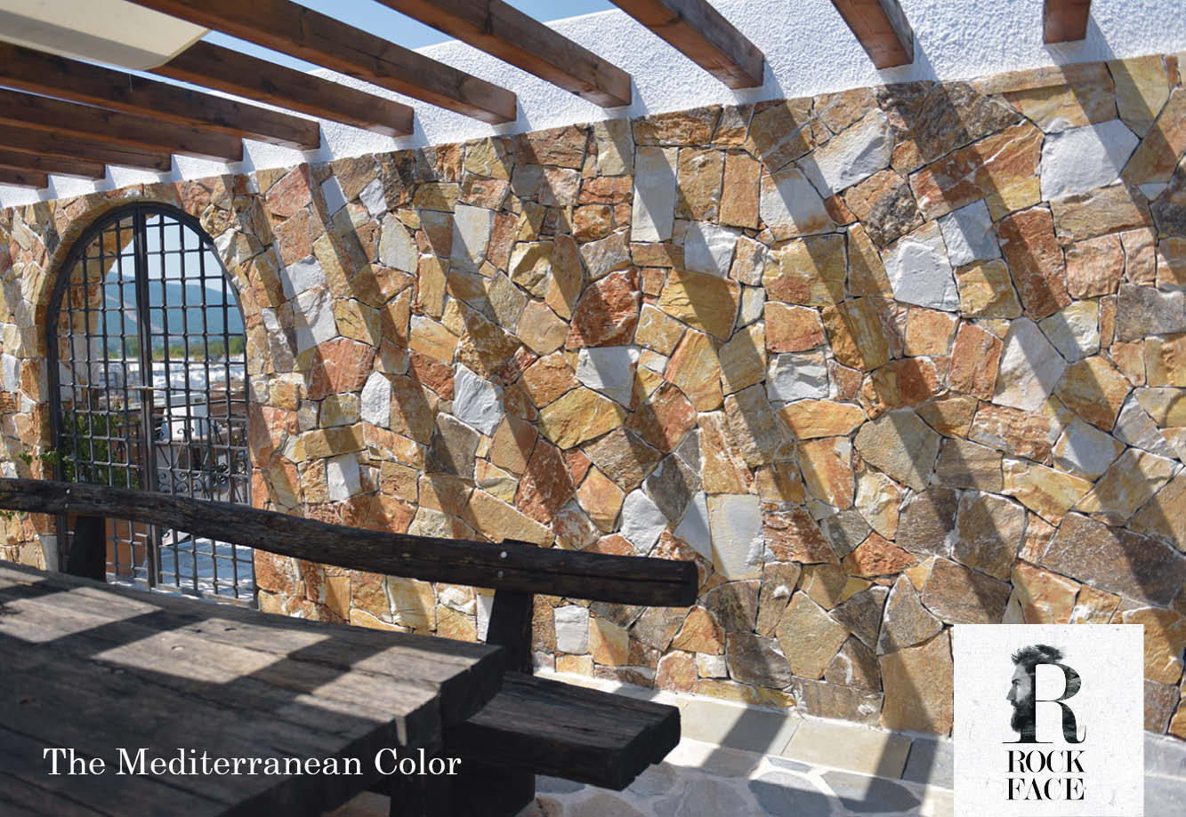 Kamień wykonany z różnego rodzaju marmurowych skał z regionu Pangeo w Grecji. Żywe, śródziemnomorskie kolory, kształty. Po obróbce grubość wynosi od 3 do 5 cm, czyli dokładnie tyle, aby uzyskać idealny efekt doskonałej powierzchni naturalnej skały.