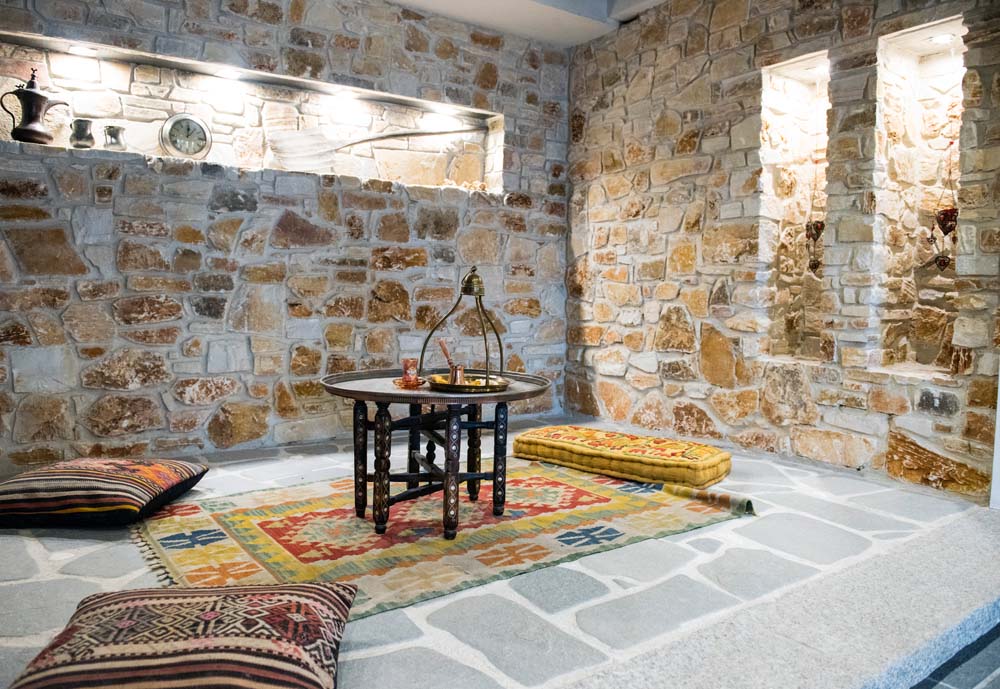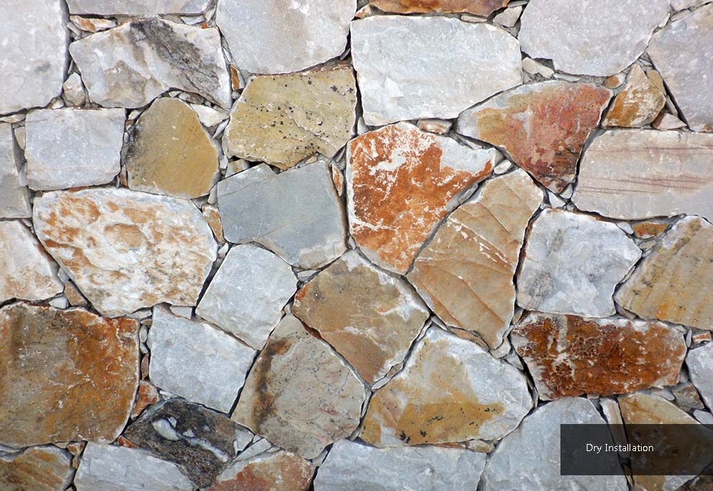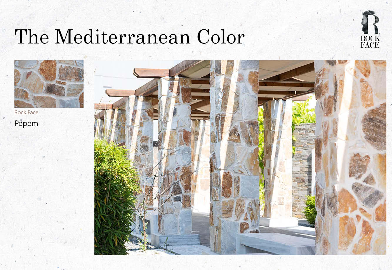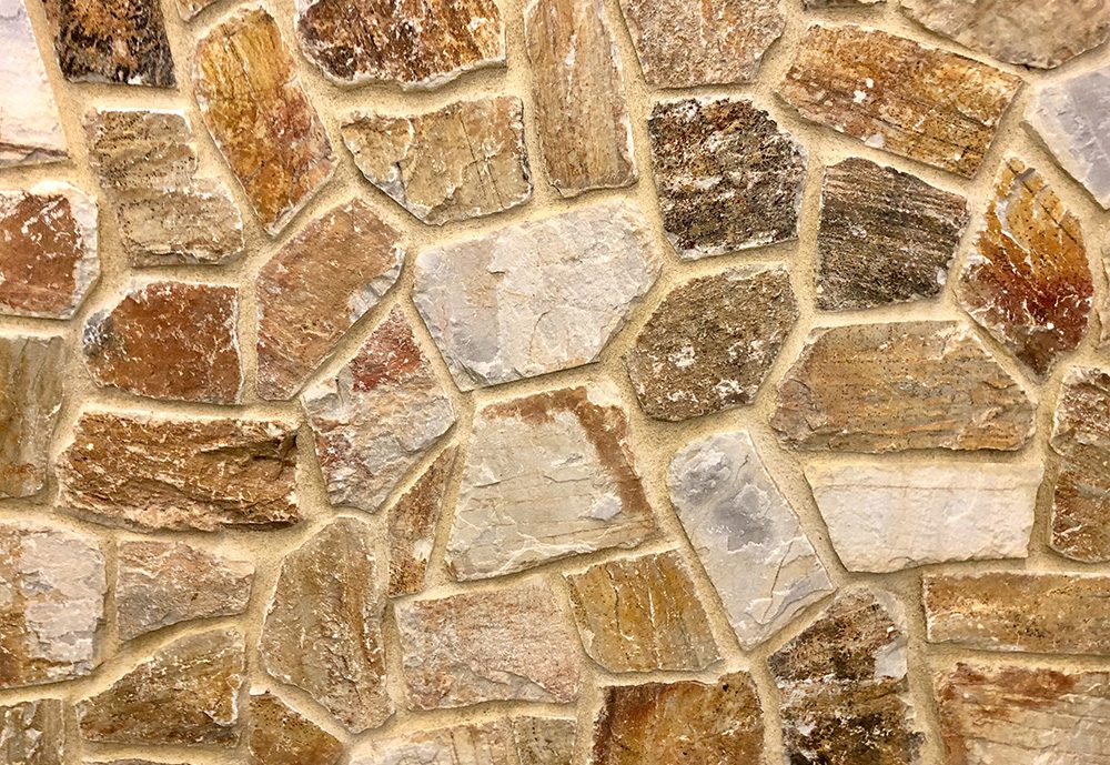 Kamień wykonany z różnego rodzaju marmurowych skał z regionu Pangeo w Grecji. Żywe, śródziemnomorskie kolory, kształty. Po obróbce grubość wynosi od 3 do 5 cm, czyli dokładnie tyle, aby uzyskać idealny efekt doskonałej powierzchni naturalnej skały.