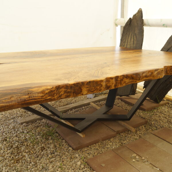 Stolik kawowy, lity dąb ,blat żywicowany ,nogi czarne metalowe